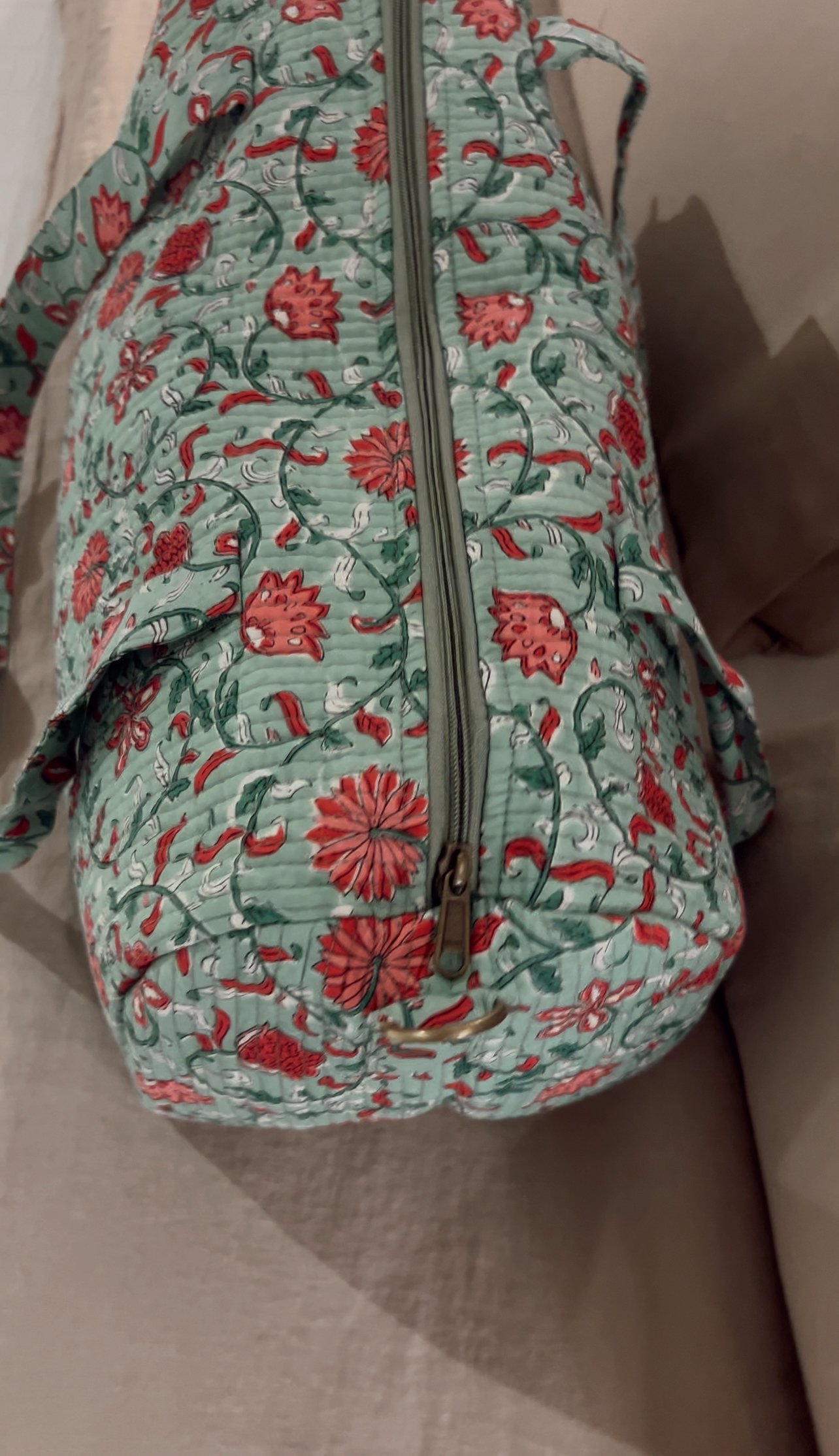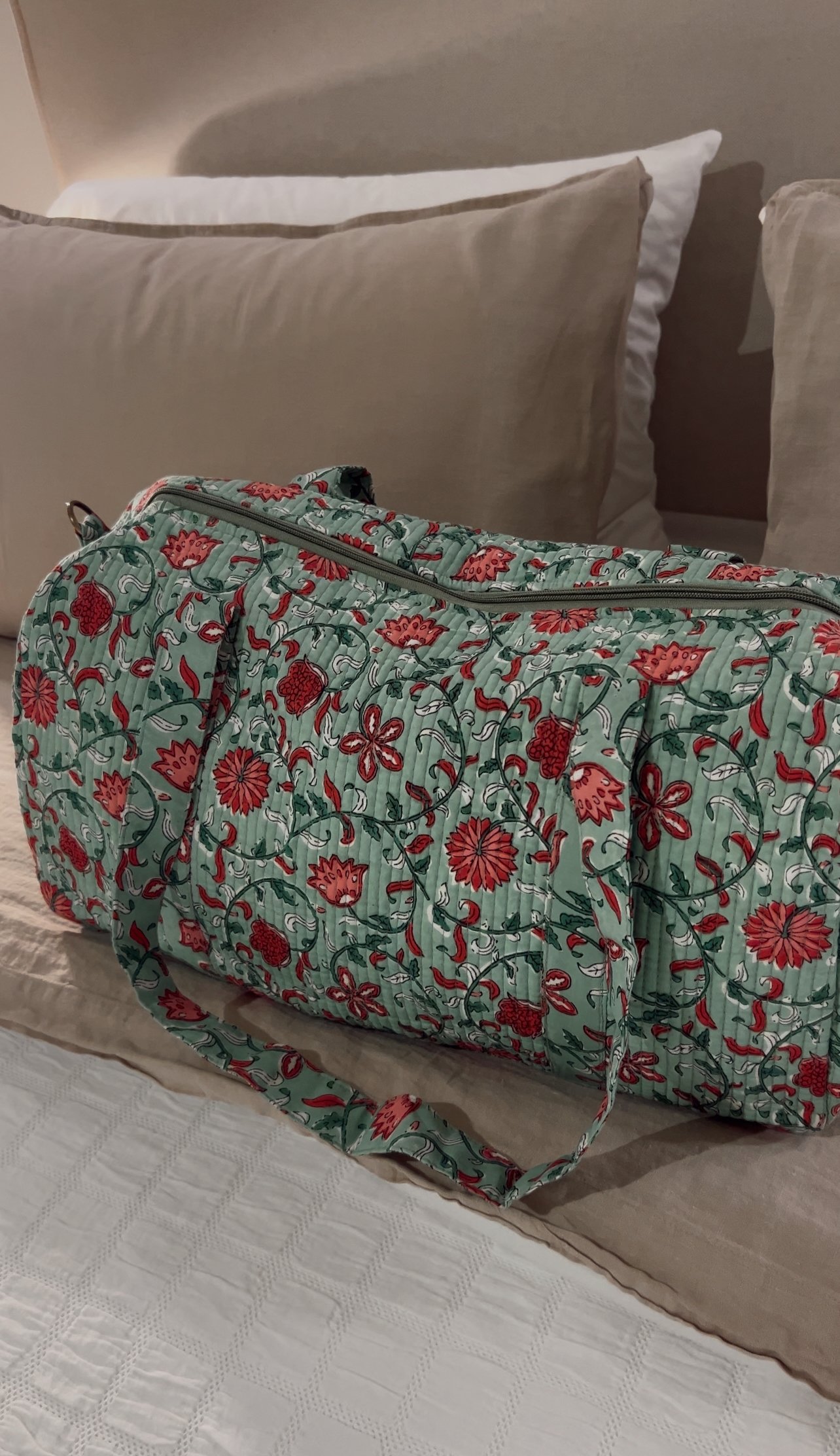 Bolsa de viaje con la personalización bordada. Asa larga ajustable y desmontable. 100% algodón canvas lavado.