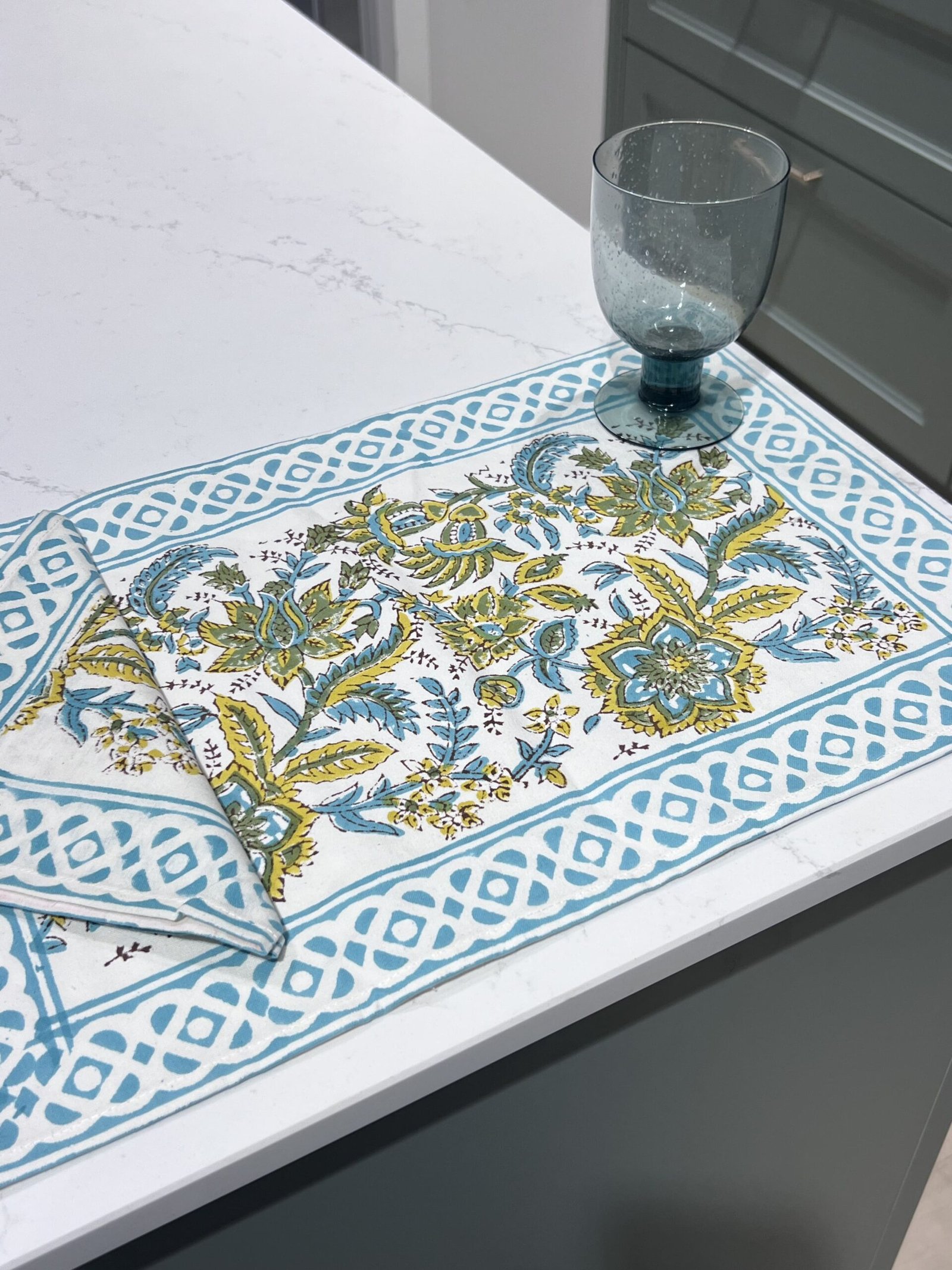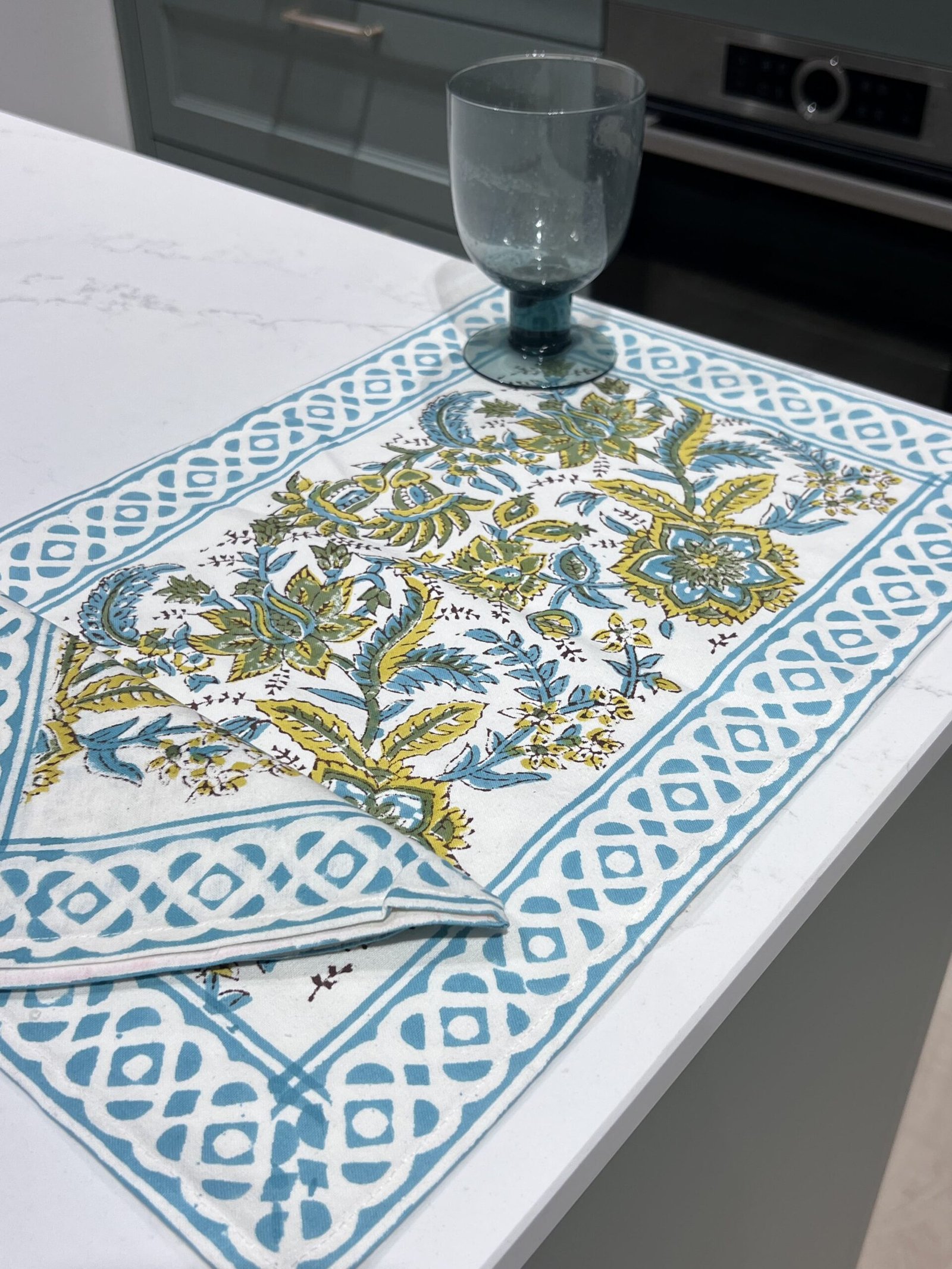 Individuales 48x32cm. Edición limitada. Algodón 100% estampado a mano y tintes naturales.