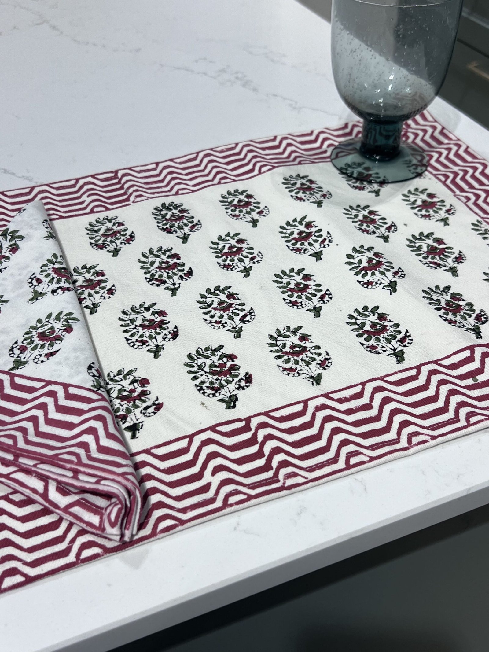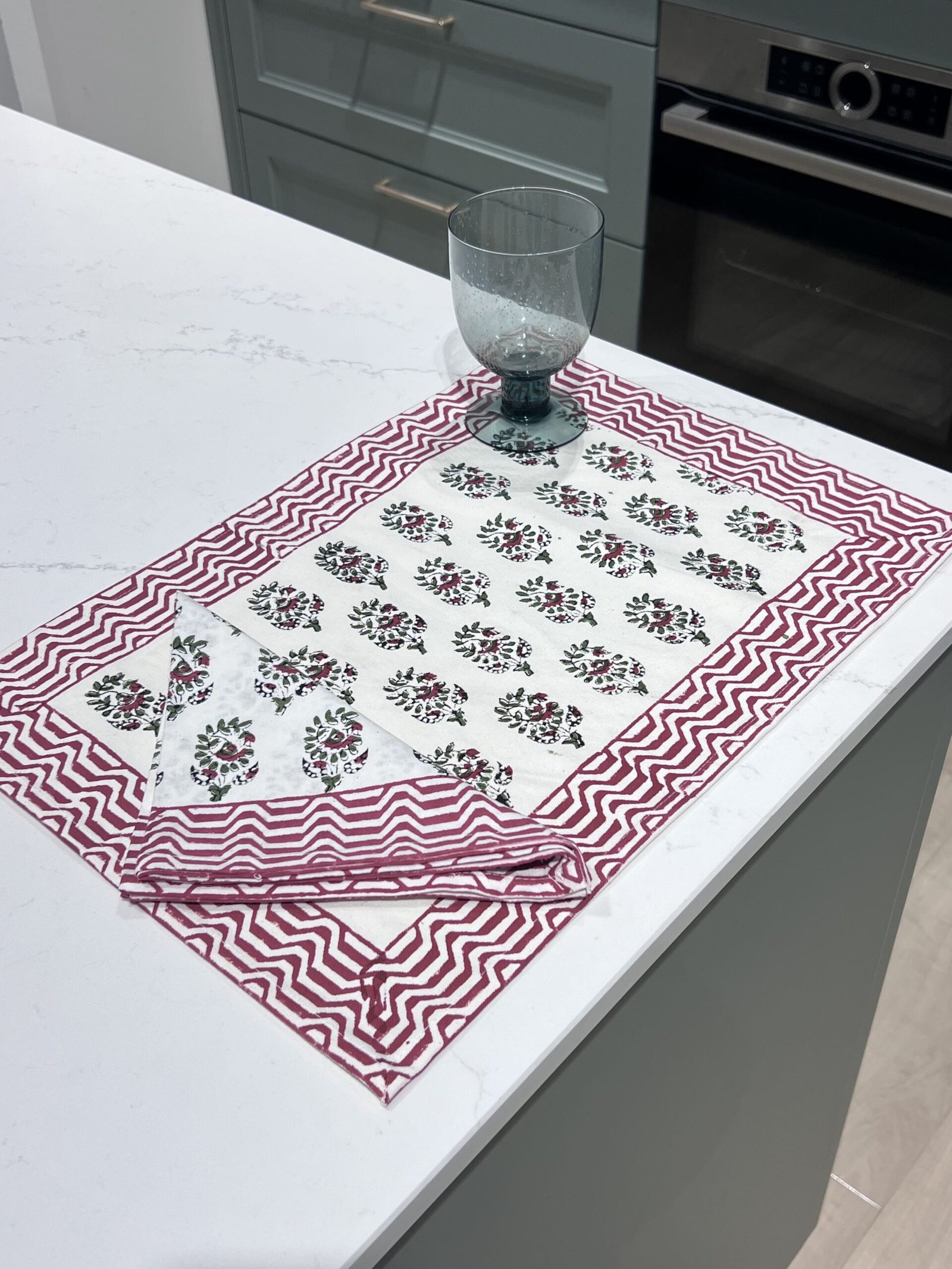 Individuales 48x32cm. Edición limitada. Algodón 100% estampado a mano y tintes naturales.