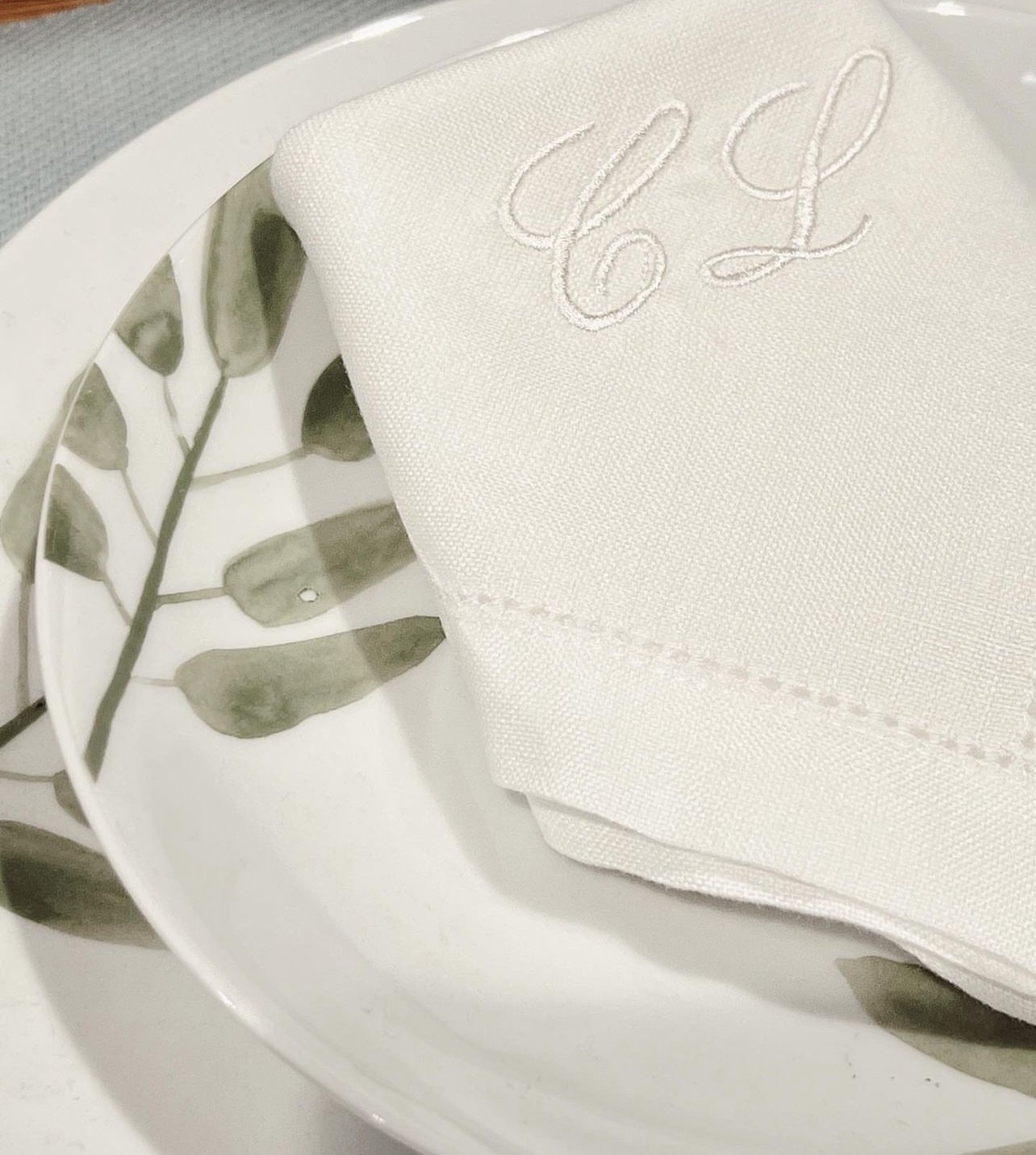 Nuestra clásica servilleta de lino blanca, da un toque muy elegante y lujoso a tu mesa. Se puede usar a diario o para una gran celebración.